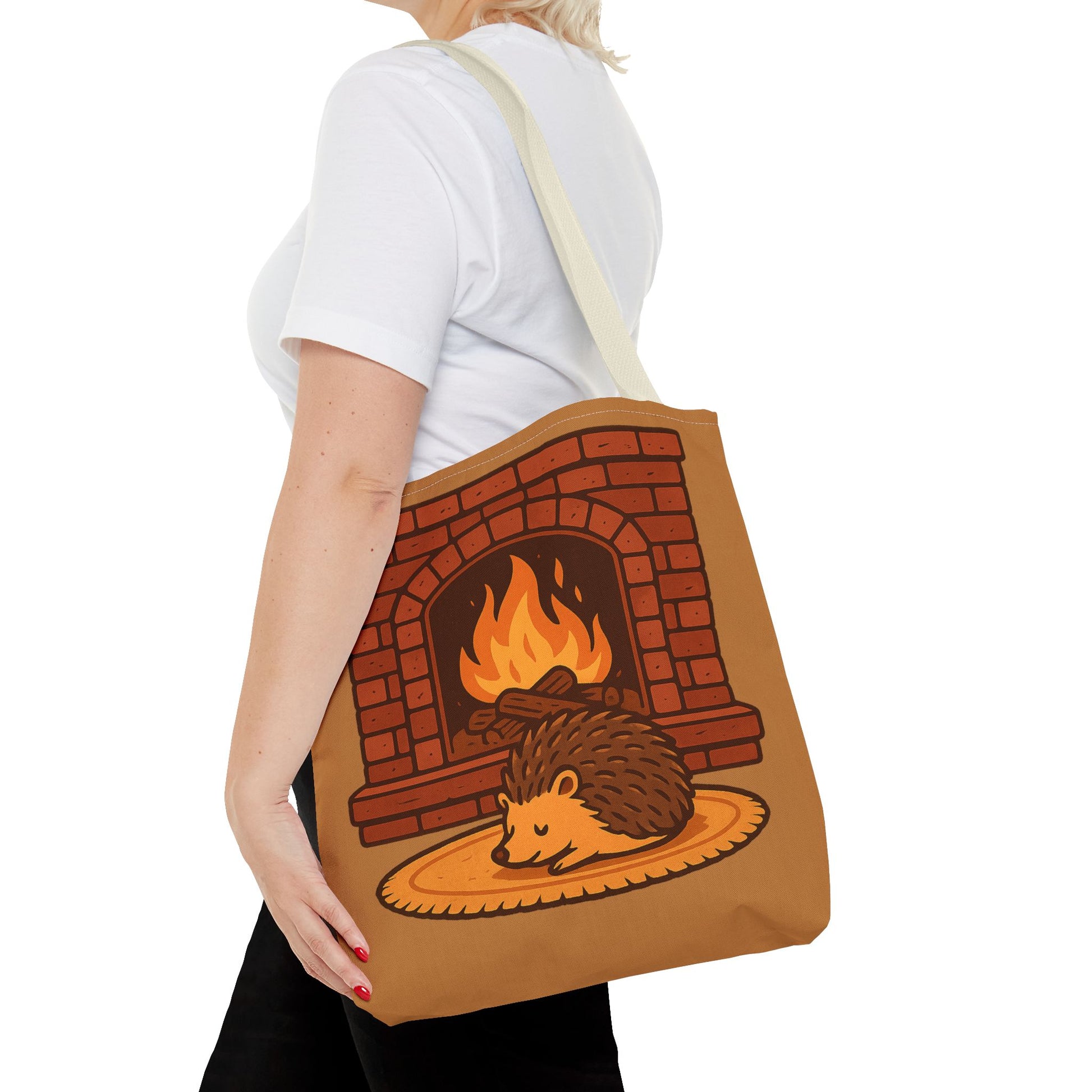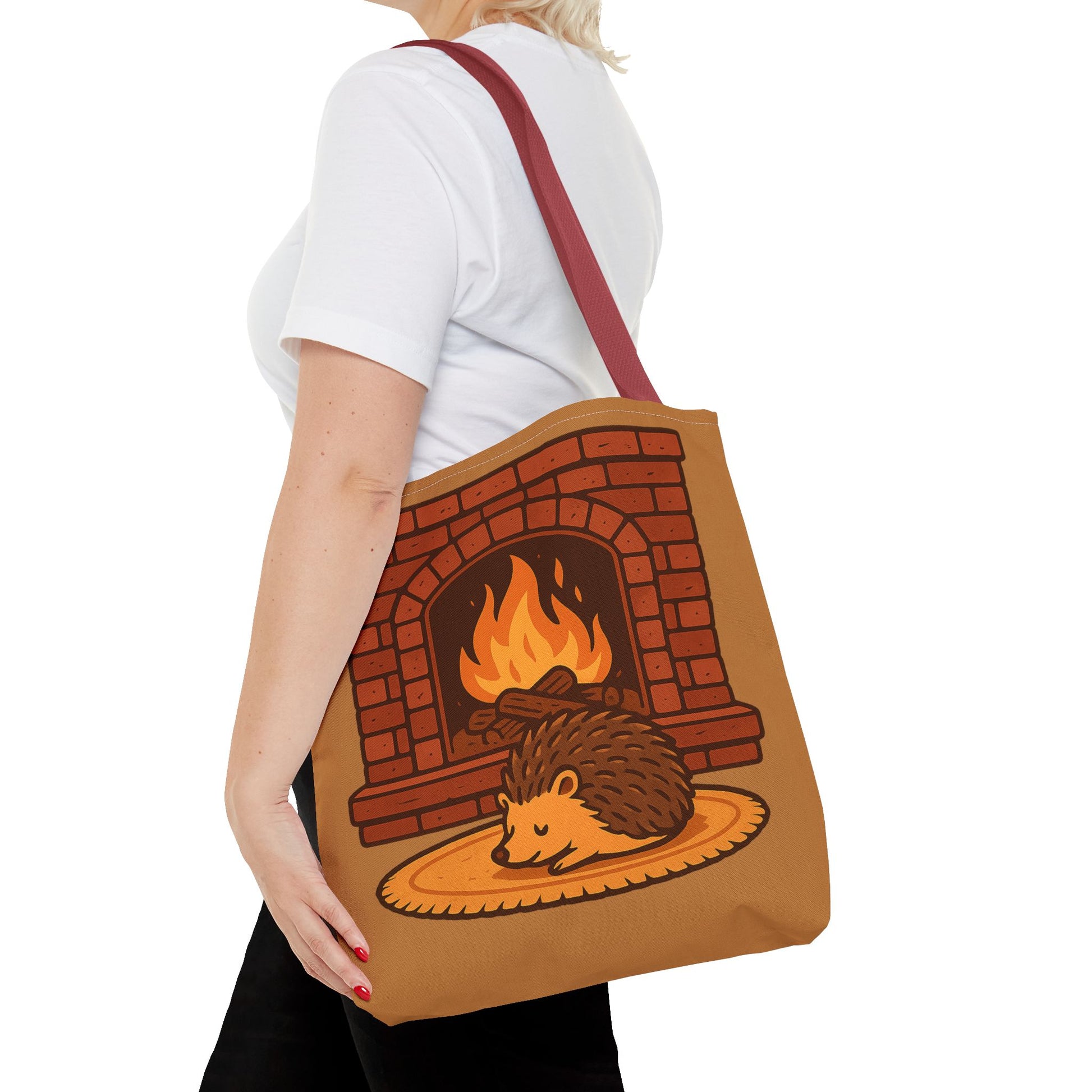 Bring home the warmth of fall with this cozy hedgehog curled by the fire. Perfect for pet owners who treasure golden evenings indoor, This tote bag seamlessly blends style with inviting charm. Grocery shopping, carrying school books, this bag will hold your items while showcasing your love for hedgehog. Ideal for gifting on occasions like birthdays, or just because, this tote is a thoughtful choice for anyone who cherishes their pets.
